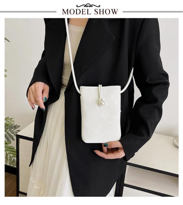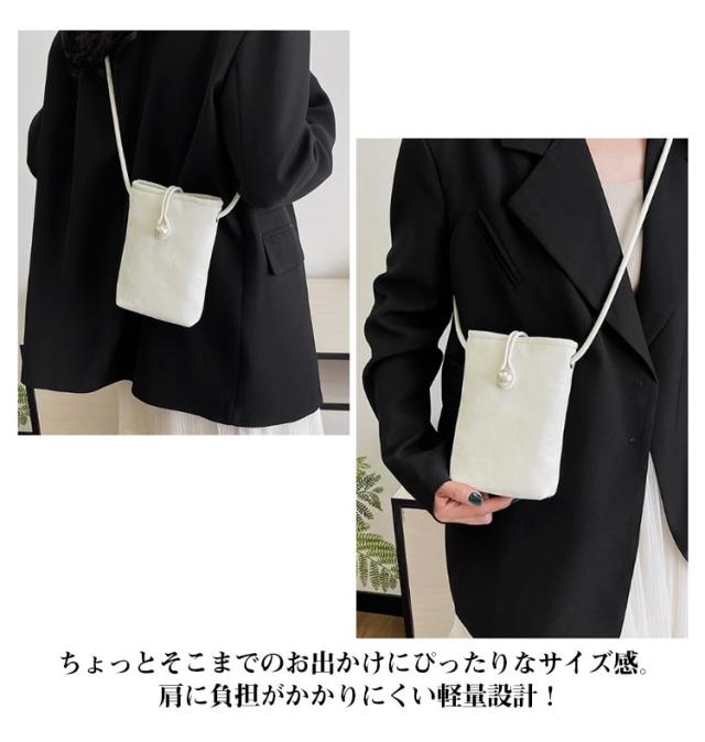 | スマホ、ミニ財布、鍵等最低限の荷物での外出にピッタリなスマホポーチ。 超ミニマムな肩掛けバッグ。洗練されたカラーとカタチは大人女子にぴったり。 ちょっとそこまでのお出かけ時にサッと持ち出して、身軽にGO★ モノトーンでシンプルなデザインなので、どんな服にも合わせやすいのがポイント! 素材は軽くて扱いやすいPUレザー製。 程よいサイズ感で普段使いはもちろん、旅行用のサブバッグとしてもお使いいただけます。 | |