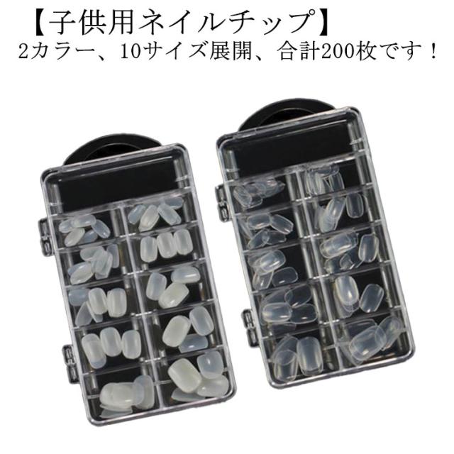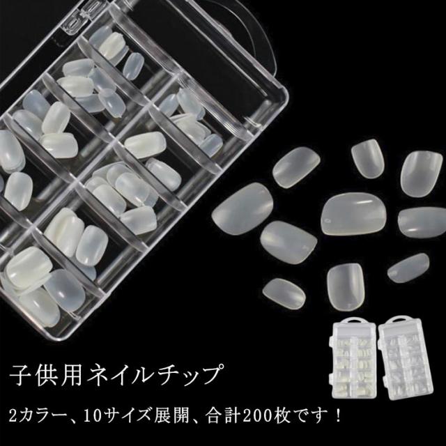 | 【子供用ネイルチップ】 2カラー、10サイズ展開、合計200枚です! 若干、平たい感じのネイルチップです。 ジェルネイル 練習用にも。 収納ケース付き。 | |