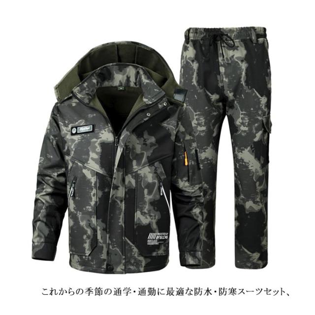 上下セット 撥水 厚手 カーゴパンツ 裏起毛 防寒 釣り 防風 作業服 防水 撥水 ウインドブレーカー 防寒着 セットアップ ジャケット 長ズボン マウンテンパーカー アウトドア 自転車 登山ウェア メンズ ゴルフ 暖かい 秋冬 冬物