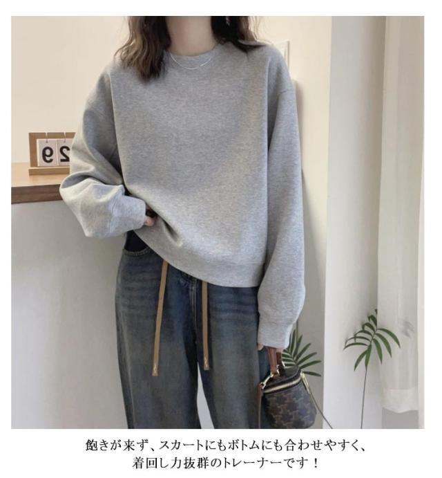 | ロングシーズン活躍の薄手スウェット生地トレーナーです。 長く着れる無地でシンプルなデザインは、トレンドに左右されない安定感のある1着です。 身体のラインを拾いにくいゆったりサイズのトレーナーなのでリラックスして着こなせます! なデザインでレイヤードにもオススメです。 飽きが来ず、スカートにもボトムにも合わせやすく、着回し力抜群のトレーナーです! | |