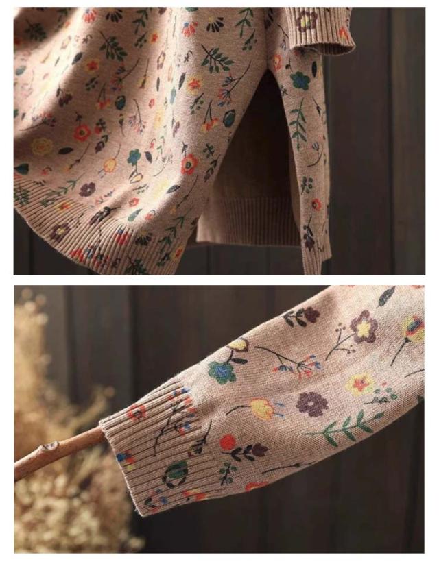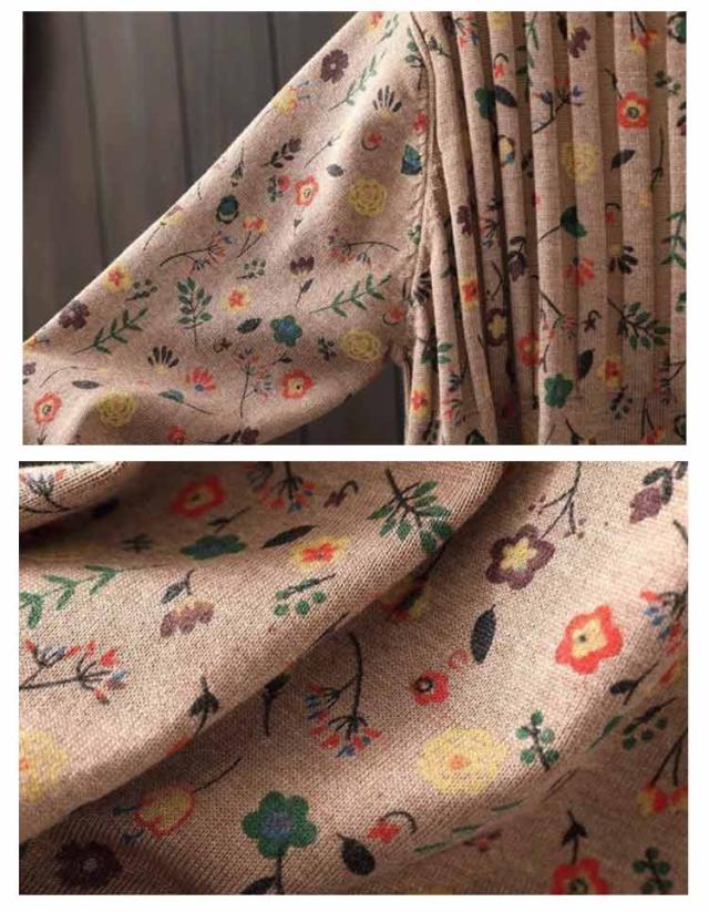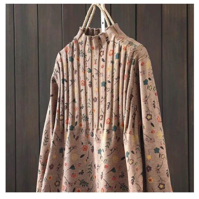 ニットソー ストレッチ チュニックワンピース レディース セーター ハイネック プルオーバー 花柄 チュニック 長袖 秋冬 薄手 体型カバー リブ ストレッチ 膝丈 ワンピース ニット ニットワンピース キレイめ チュニック 春 秋