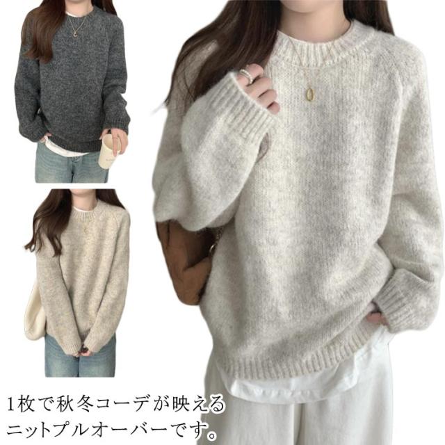 ニット セーター 肌触り プルオーバー 秋 ニットトップス クルーネック 冬 レディース 大きいサイズ シンプル 柔らかい 無地 トップス 秋冬 ニット 通勤