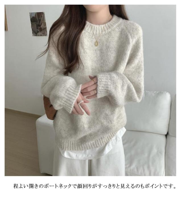 | 1枚で秋冬コーデが映えるニットプルオーバーです。 程よい開きのボートネックで顔回りがすっきりと見えるのもポイントです。 着心地も暖かく、スカートにもパンツにも合わせやすいアイテム。 | |