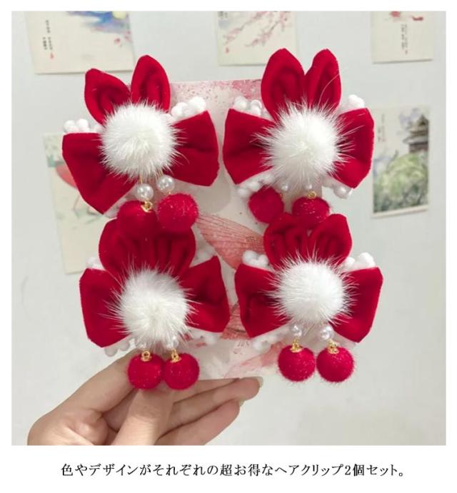 2個セット 送料無料 子供用 髪留め ベビー キッズ 可愛い ヘアリボン ヘアピン 女の子 前髪ピン ヘアアクセ ヘアクリップ 誕生日 結婚式 通園