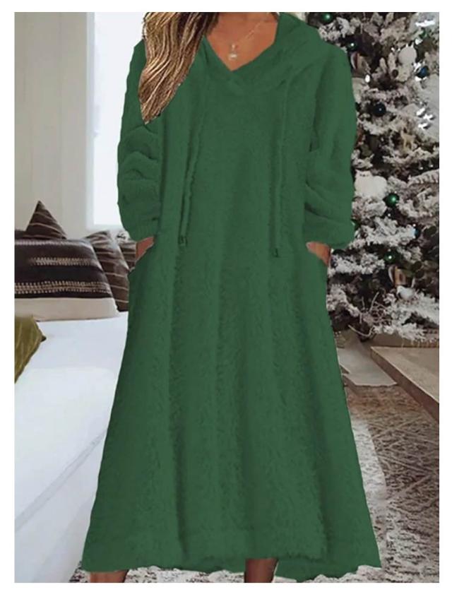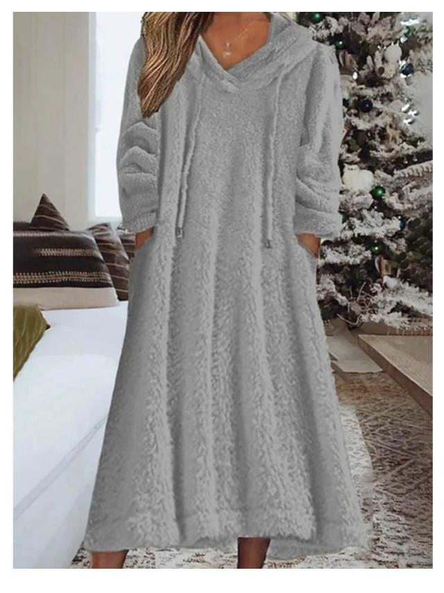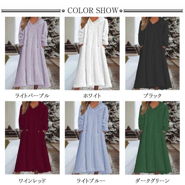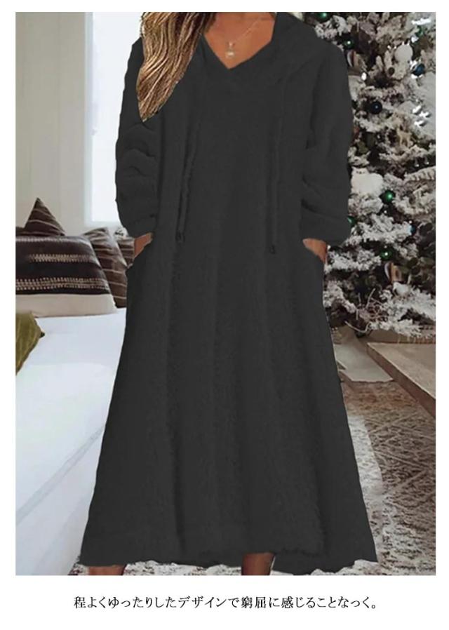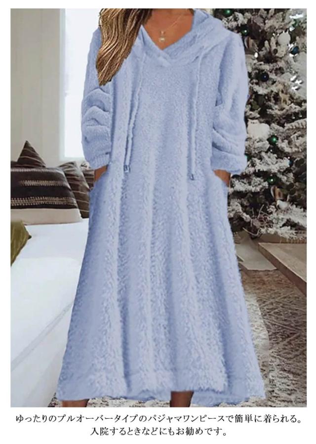 レディース ルームウエア ルームワンピース あったか フード付き ワンピース もこもこ ロング丈 厚手 寝間着 ロング マキシ丈 ロングワンピース 寝巻き 無地 体型カバー 秋冬 シンプル 秋冬 防寒着 部屋着 送料無料 可愛い 大きいサイズ ギフト プレゼント