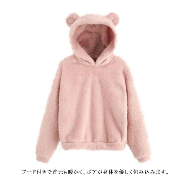 プルオーバーパーカー パーカー 耳付き 秋冬 羽織り ボア かわいい トップス 暖かい ボアパーカー 上着 大きいサイズ 長袖 起毛 ミディアム丈 冬服 可愛い 無地 シンプル パーカー 重ね着 部屋着 ゆったり ボアトップス ギフト プレゼント