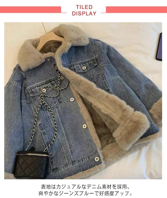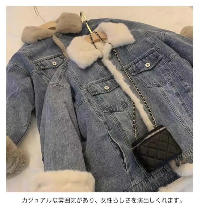 裏起毛 ジージャン あったか 秋冬 レディース ファーコート ボアブルゾン アウター 防寒 デニムジャケット 厚手 もこもこ デニムコート デニムジャケット 暖かい ショート丈 ボアコート ふわふわ 襟 切り替え ポケット付き 通勤 Gジャン おしゃれ カジュアル