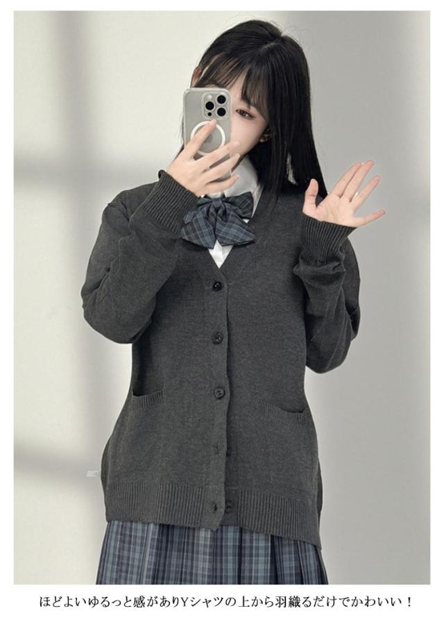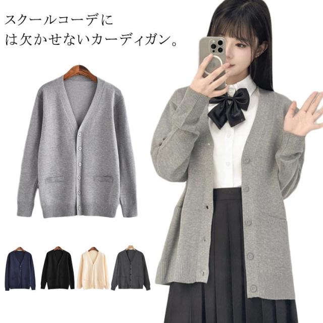 ニットカーディガン 羽織り ネイビー 長袖 スクールカーディガン 学生服 女子 高校生 無地 カーディガン スクール 学生 トップス 学校 かわいい 薄手 ゆったり カーディガン レディース Vネック スクールセーター シンプル JK制服 春夏秋冬