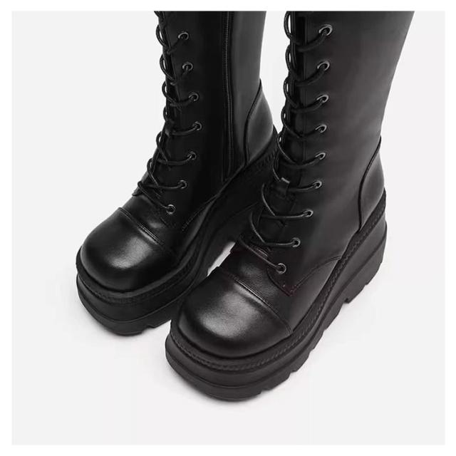 9cm 身長アップ 厚底ロングブーツ レディース コスプレ レースアップ 編み上げ ロングブーツ 厚底ブーツ パンク靴 厚底靴 秋冬 ブーツ ロング ブーツ 厚底 安定感 軽量 脚長効果 アイドル ガーリー 推し活 高見え