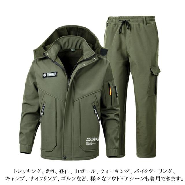 厚手 メンズ 上下セット 撥水 防風 裏起毛 釣り マウンテンパーカー 防水 作業服 セットアップ ウインドブレーカー 防寒着 上下セット カーゴパンツ 長ズボン ジャケット アウトドア 自転車 防寒 撥水 ゴルフ 暖かい 秋冬 冬物