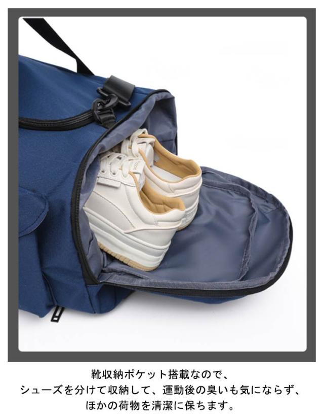 | 【大容量】【3WAY】【シューズ収納】【3color】 旅行、スポーツ、合宿、ジムなどの移動に便利な大容量バッグ。 リュック型、ショルダー型、トート型と3WAYでの使用が可能です。 靴収納ポケット搭載なので、シューズを分けて収納して、運動後の臭いも気にならず、ほかの荷物を清潔に保ちます。 側面は独立な防水ポケットがあって、汚れた服などは別に収納できます。 オクスフォード生地を採用し、軽い上に通気性が高いです。また水もはじく為、雨の日も安心してご利用頂けます。 スポーツ用バッグ、仕事用バッグ、普段用バッグと様々な用途に対応できる ジムでのトレーニングや部活、合宿、修学旅行などでも活躍します。 | |