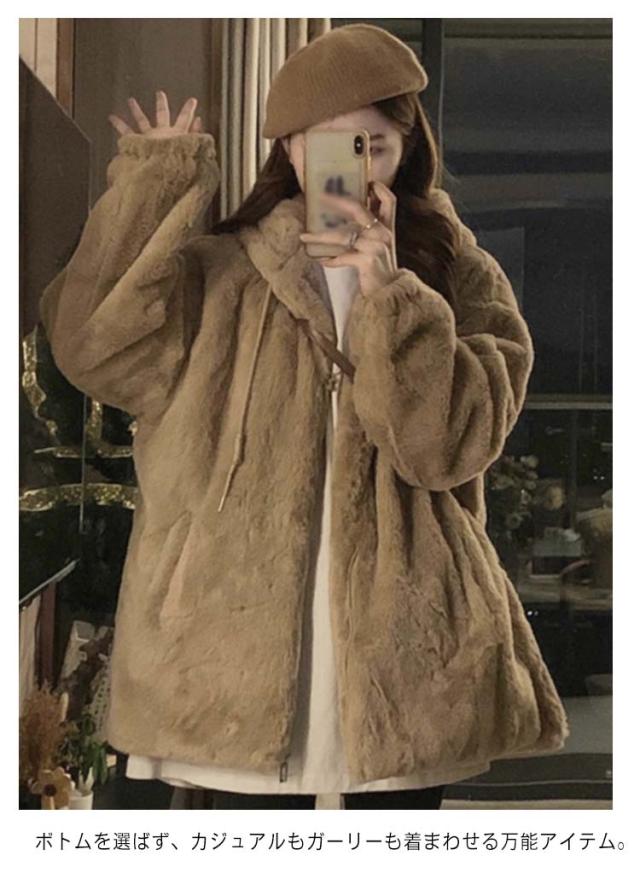 アウター フード付き ジャケット 防寒着 フリースジャケット もこもこ ボアブルゾン ジャンバー レディース ジップアップ ブルゾン カジュアル ゆったり アウター ふわふわ 暖かい シンプル フロントジップ 暖か