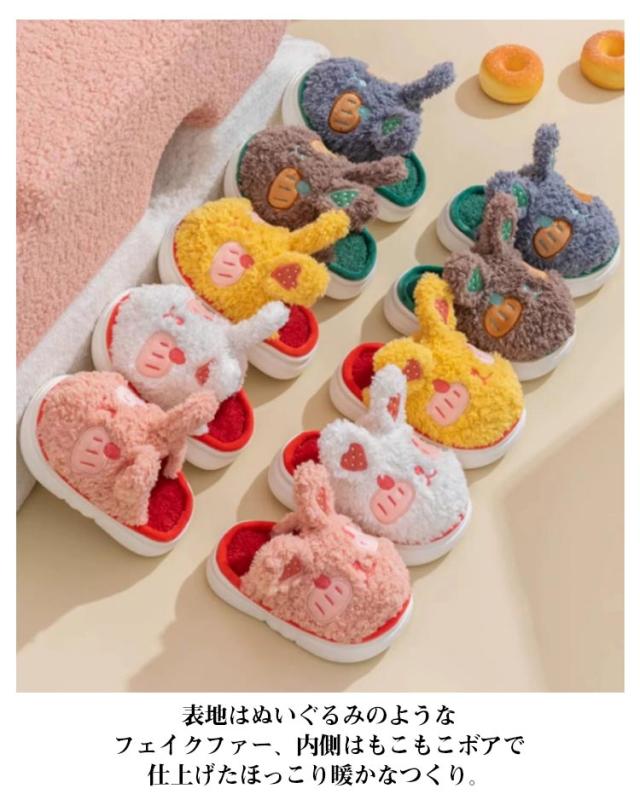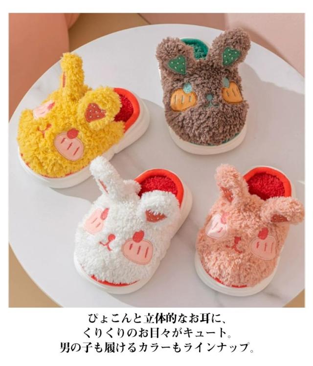 暖かい ルームシューズ ルームシューズ あったか スリッパ キッズ ふわふわ ルームスリッパ もこもこ 裏起毛 ボア 子供用 部屋履き 動物 アニマル ウサギ 滑り止め 冬 防寒