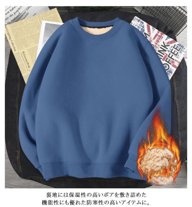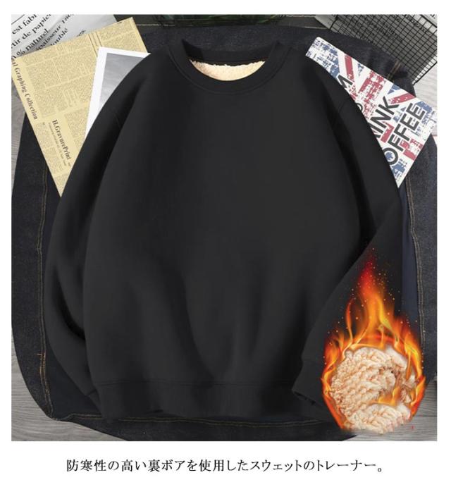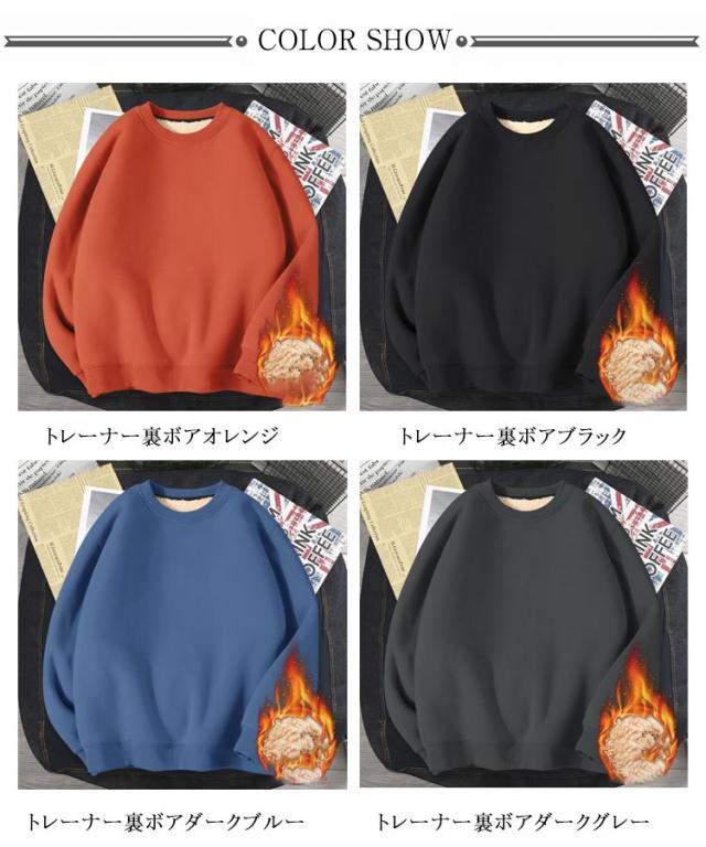 裏ボア スウェット トレーナー メンズ レディース 裏起毛 パーカー 長袖 トップス クルーネック ラウンドネック 大きいサイズ 厚手 シンプル 無地 暖かい あったか 防寒 プルオーバー おしゃれ 男女兼用 ユニセックス 秋 冬 冬服 M-5XL