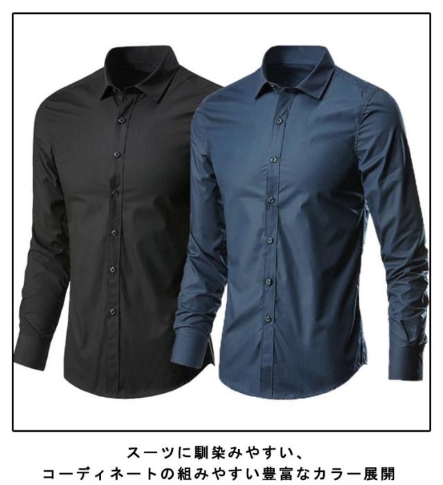 2枚セットカッターシャツ メンズ スリム カラーシャツ メンズ 黒 ノーアイロン Yシャツ 紺 ドレスシャツ ワイシャツ 形態安定 ビジネスシャツ 大きいサイズ 黒シャツ カジュアル パーティー 結婚式 二次会 ノンアイロン 長袖