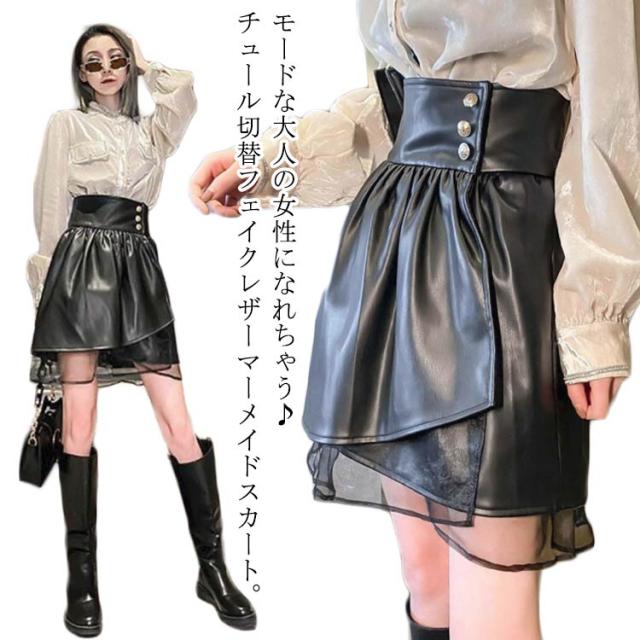 | モードな大人の女性になれちゃう♪チュール切替フェイクレザーマーメイドスカート。 アシンメトリーデザインと透けるチュール裾が大人セクシーなイメージ。 動くたびに揺れるフレアチュール裾レディースムード加速。 ハードすぎないデザインで、女性らしさをさりげなく演出します。 ストレッチ性のあるソフトな素材で、動きやすさも抜群。 デートを初めて、二次会やパーティーなど様々なシーンで大活躍。 | |