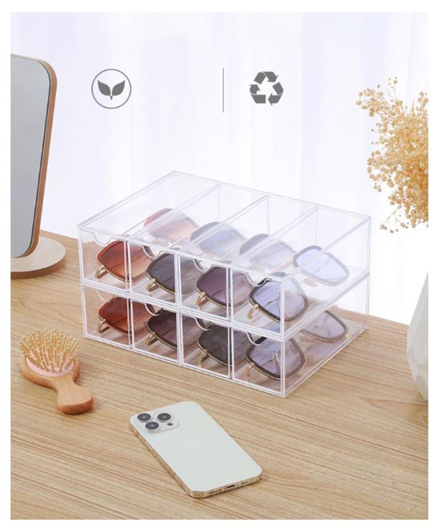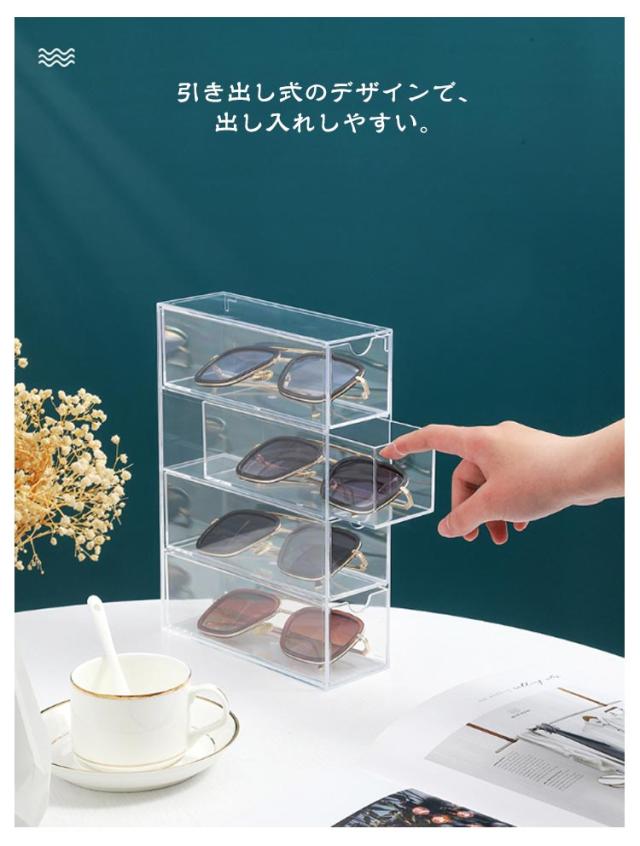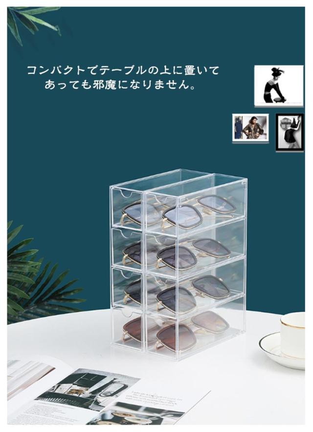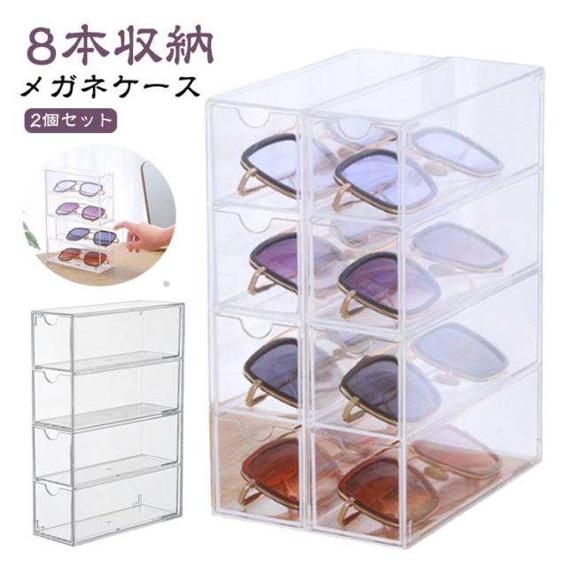8本収納 メガネケース メガネ サングラスケース メガネ収納 メガネスタンド 透明 引き出し式 メガネ入れ サングラス収納 収納ボックス めがねケース 眼鏡ケース サングラス 小物入れ めがね 眼鏡入れ 2個セット