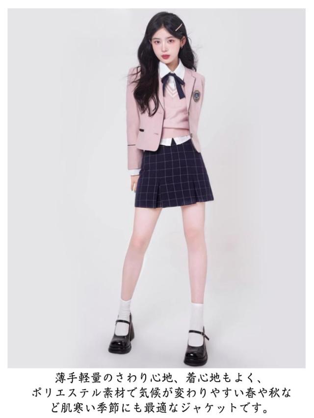| 十分な耐久性、ウォッシャブル加工素材を使用、独特シャープなシルエットの女子用制服ブレザーです。 清潔感のあるスタイルが叶う、深めのVラインがすっきりとした2つ釦ジャケットと、清楚で上品な印象を演出します。 薄手軽量のさわり心地、着心地もよく、ポリエステル素材で気候が変わりやすい春や秋など肌寒い季節にも最適なジャケットです。 入学式、学園祭、文化祭、発表会など、フォーマルなシーンにピッタリなフォーマルスーツです。 【セット内容】ジャケット+シャツ+ベスト+スカート+リボン | |