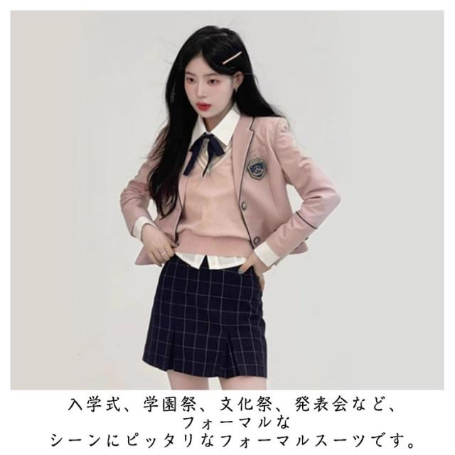 卒業式 スーツ 女の子 ジュニア上下セット 制服 ブレザー スクール制服 スーツ 韓国 制服 制服 学生服 高校生 女子高校生 セットアップ シャツ 女子高校生 フォーマルスーツ セット 5点セット 長袖 スカートスーツ リボン 卒業式 送料無料 カジュアル
