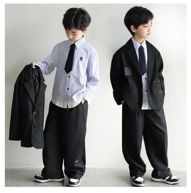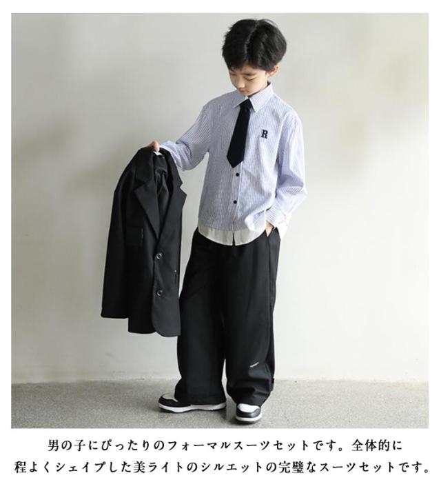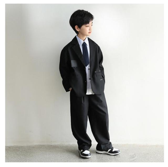 卒業式 スーツ 男の子 韓国 ファッション 黒 フォーマル スーツ 子供 パンツスーツ 入学式 ゆったり カジュアル スーツ キッズ ダンス衣装 セットアップ ジャケット ズボン 2点セット ゆったり 小学校 シンプル 発表会 七五三