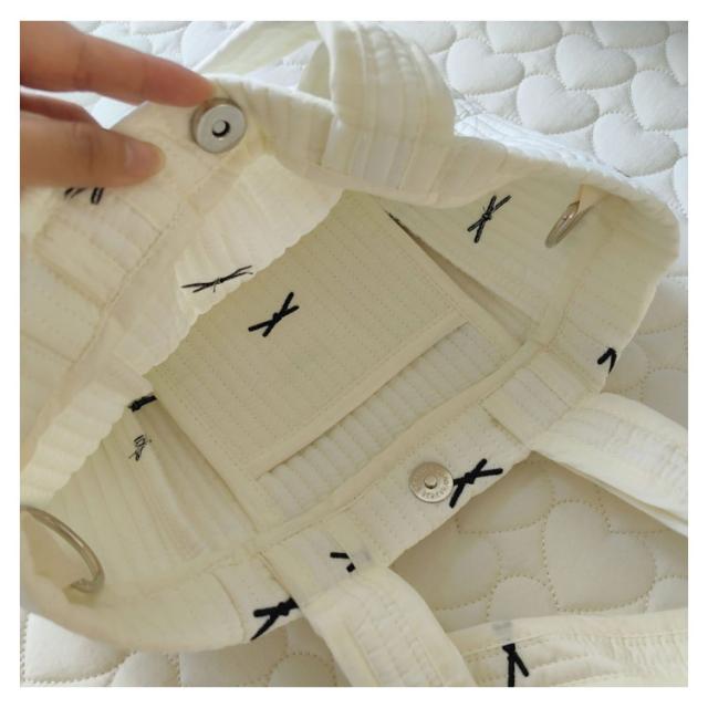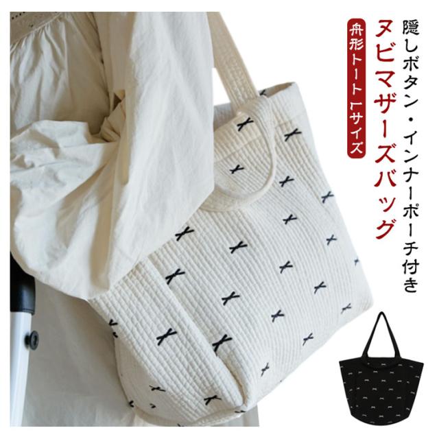 マザーズバッグ トート 洗える ヌビバッグ トートバッグ マザーズ バッグ 軽量 大容量 たくさん入る レディース 肩掛け お弁当ケース 出産祝い 通勤 a4 ヌビバッグ ミニ リボン 刺繍 韓国 かわいい 総柄 リボン柄 オフホワイト ブラック 白 黒 L ナチュラル 送料無料