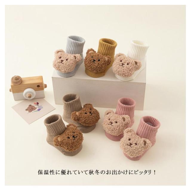 3歳 靴下 キッズ 韓国 赤ちゃん靴下 0歳 くま 2歳 1歳 【2足セット】赤ちゃん ショート 春 ぬいぐるみ かわいい クマ 【2足セット】赤ちゃん ベビー用 秋 ソックス 新生児 冬 男の子 女の子 ベビー コットン 防寒対策 脱げない