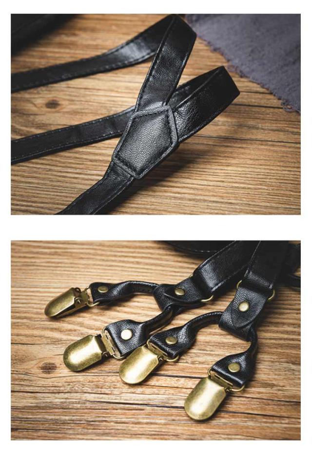 メンズ フェイクレザー サスペンダー 20mm クリップ 調節可能 フォーマル サスペンダー ライトブラウン ビジネス PU レザー 男女兼用 ブラック 黒