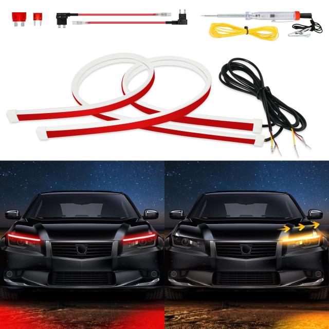 DUOFU365 LEDテープ フードライト 車用 極薄型 2色切替 シーケンシャル流れる 防水 側面発光 汎用タイプ ボンネットライト 2本入り シリ