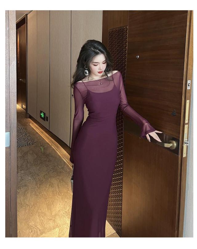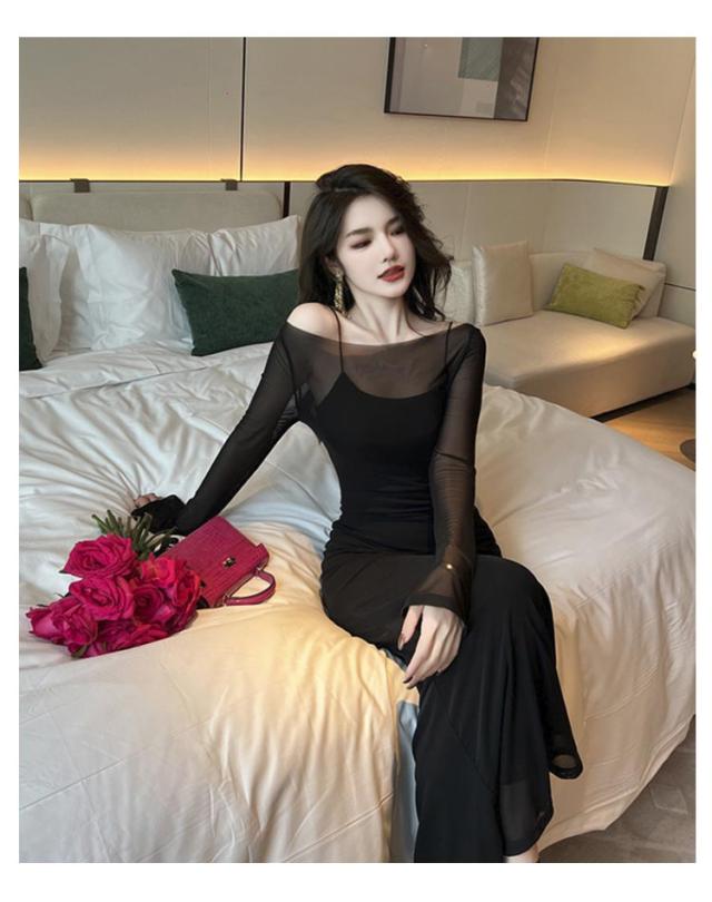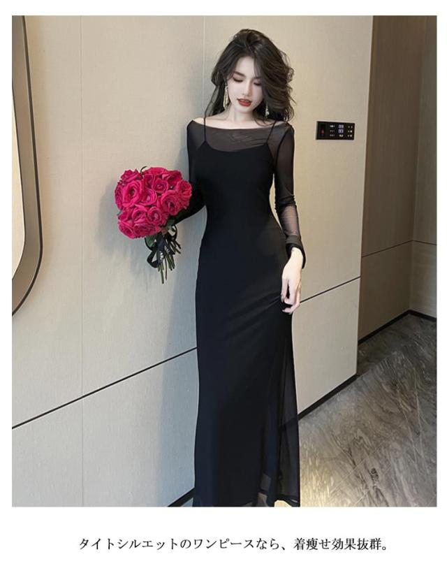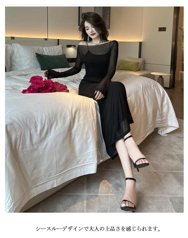 ドレス ワンピース フェミニン シースルーワンピース ロング丈 シアーワンピース 韓国ファッション シアートップス シースルー ロング キャミワンピース キャミ タイトワンピース セクシー きれいめ パーティー タイトワンピース S M L