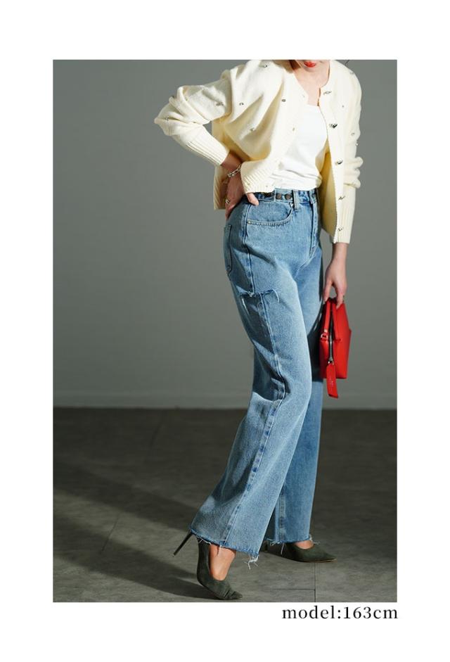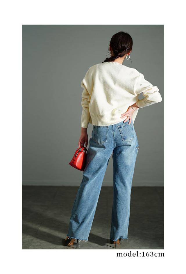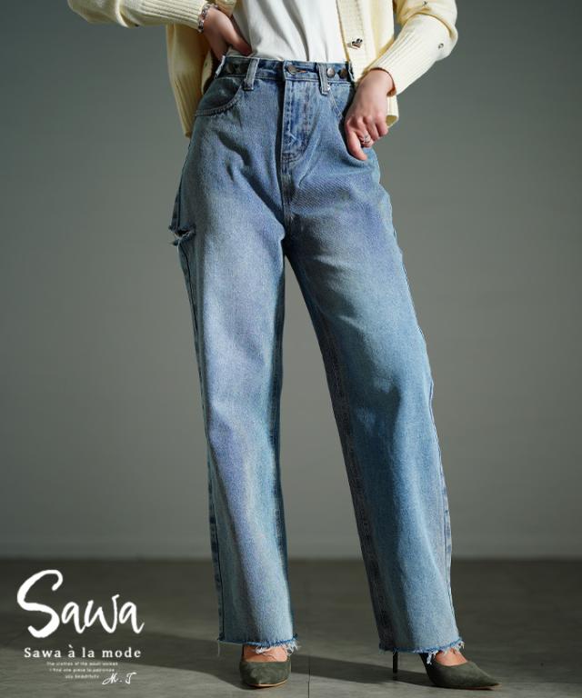 春新作 大人の垢抜けヴィンテージダメージデニムパンツ レディース ファッション パンツ デニム ダメージ ウォッシュ 無地 切りっぱなし ロング ポケット 青 30代 40代 50代 60代 サワアラモード sawaalamode otona 大人 cawaii 可愛い 洋服 かわいい服 sawa-9869
