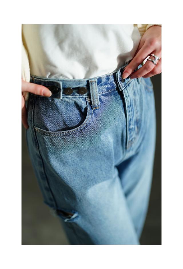 特徴: ダメージ ジッパーフライ ポケット ヴィンテージ ウォッシュ 飾りボタン