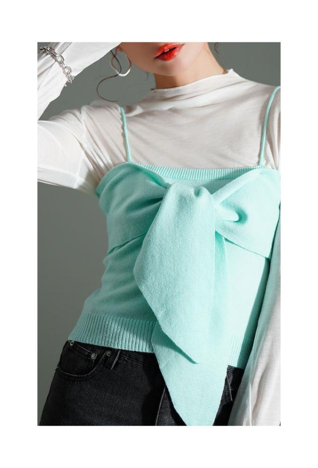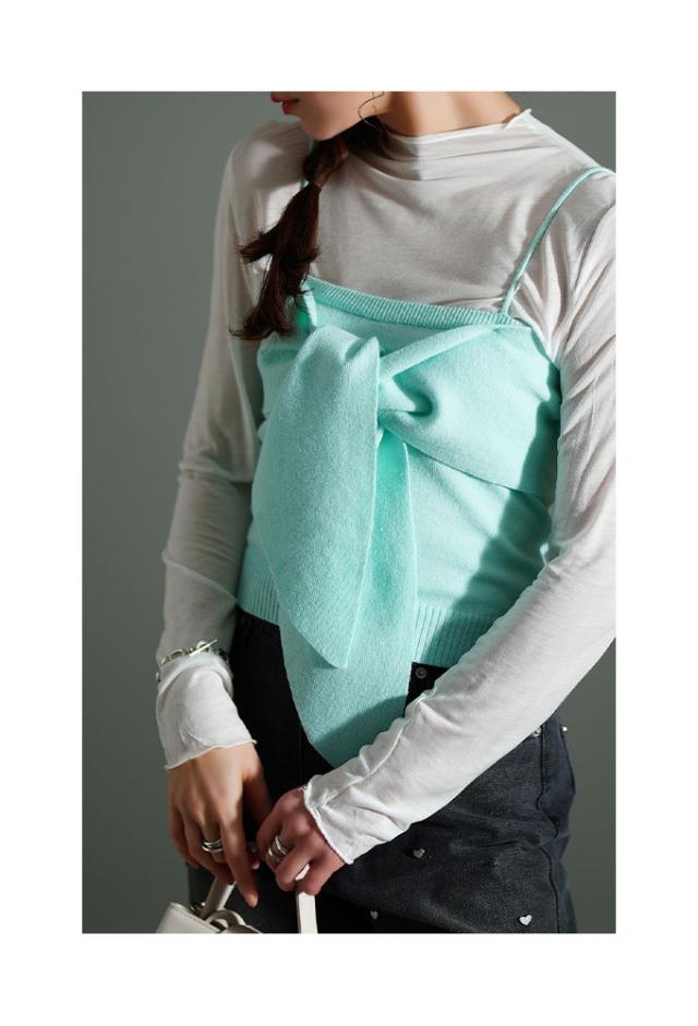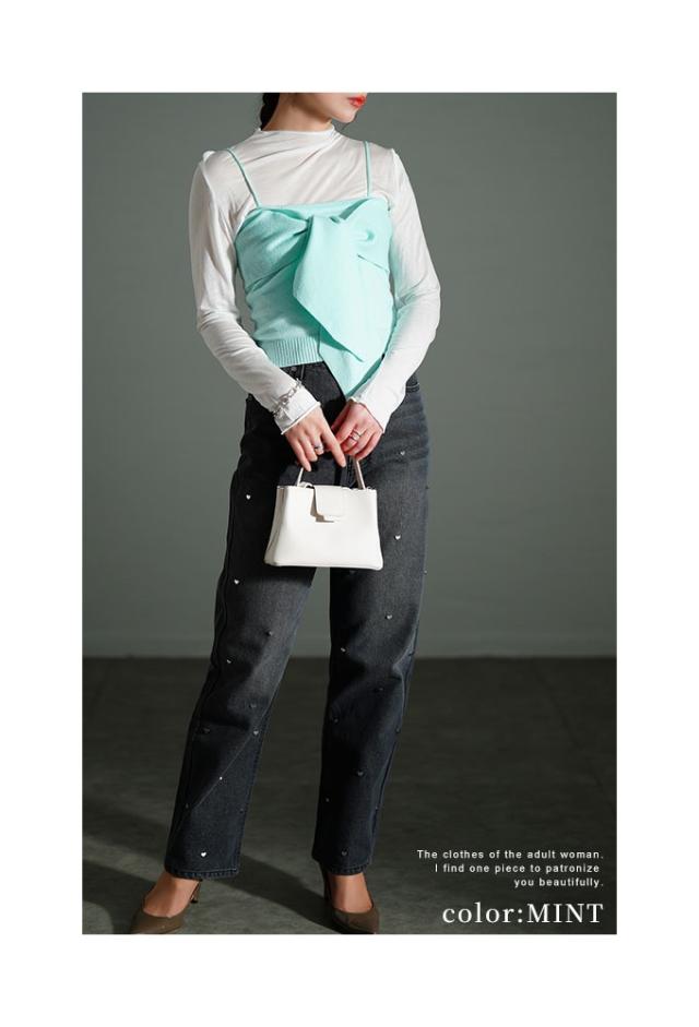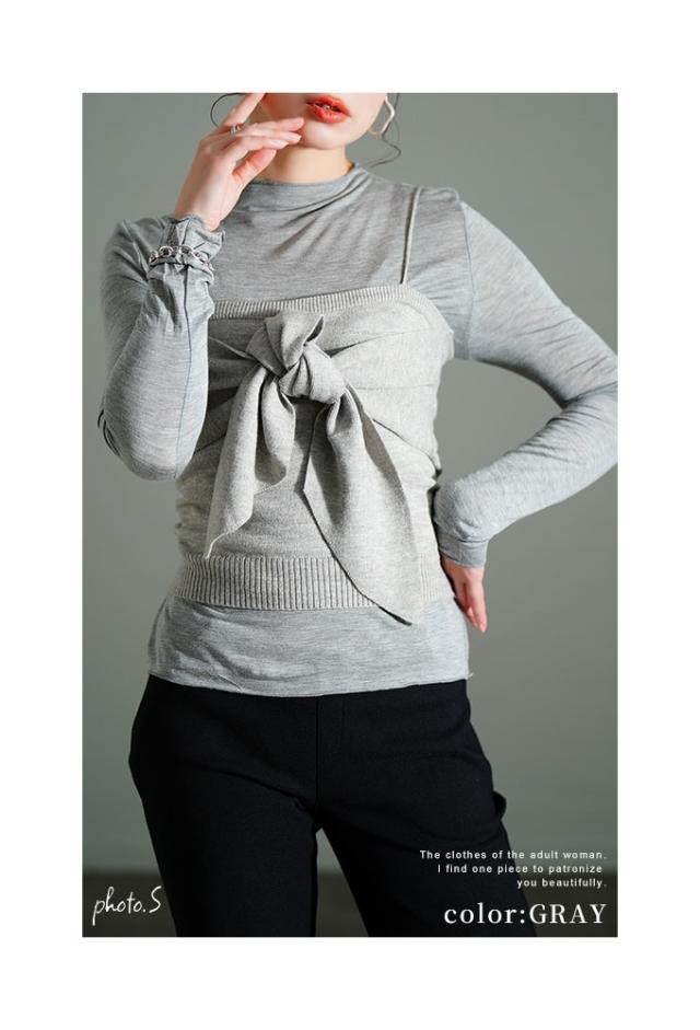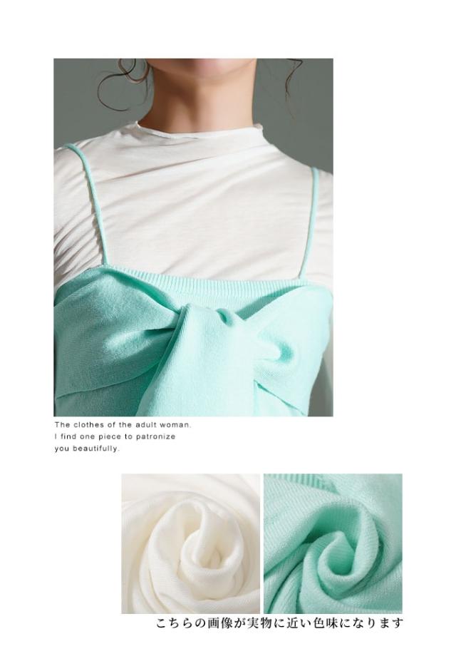 春新作 胸元華やかカットソー×ニットビスチェアンサンブル レディース ファッション トップス カットソー キャミソール ニット ビスチェ リボン アンサンブル 30代 40代 50代 60代 サワアラモード sawaalamode otona 大人 cawaii 可愛い 洋服 かわいい服 sawa イベントセール