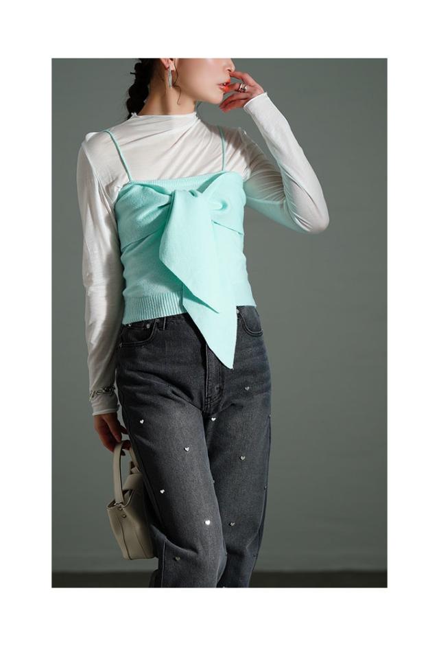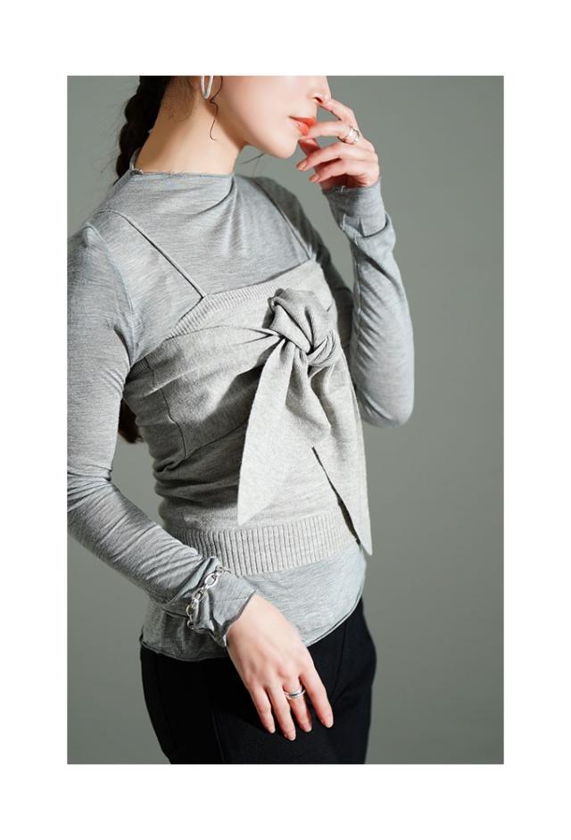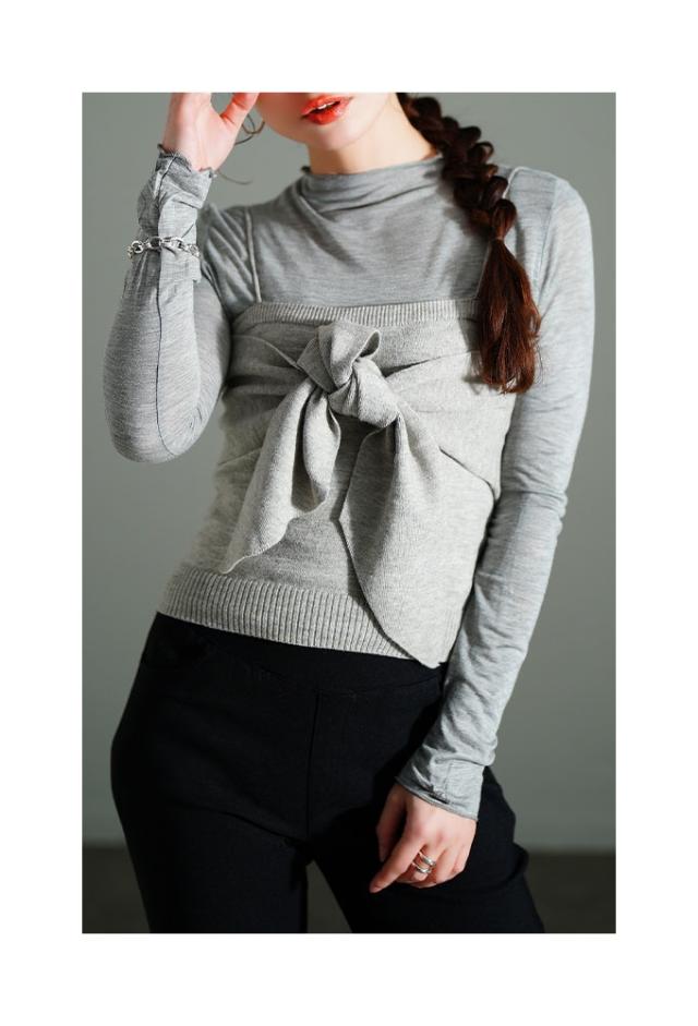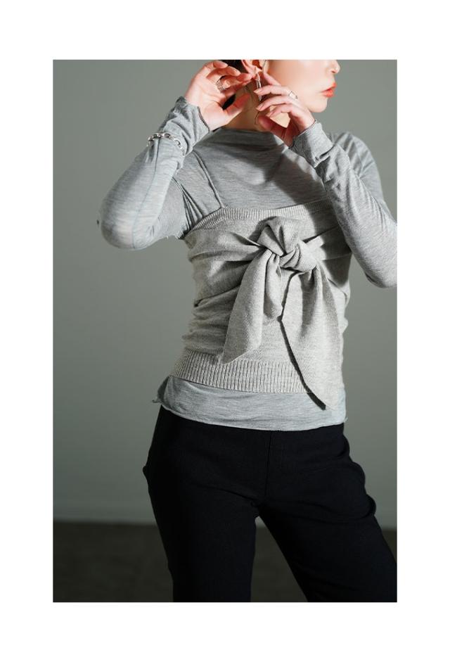 特徴: アンサンブル リボン 重ね着 リブ