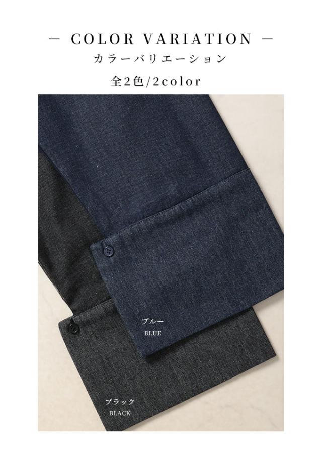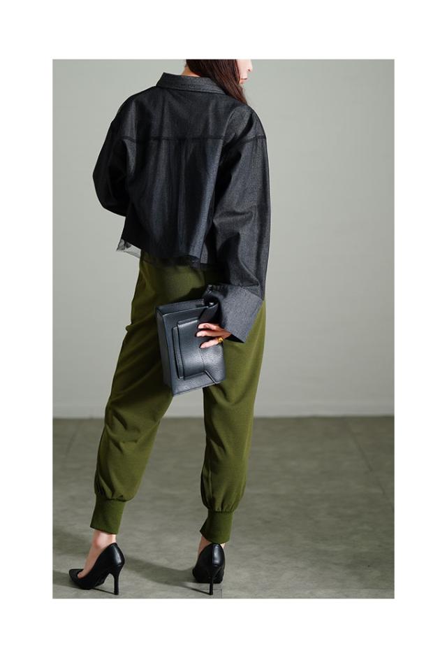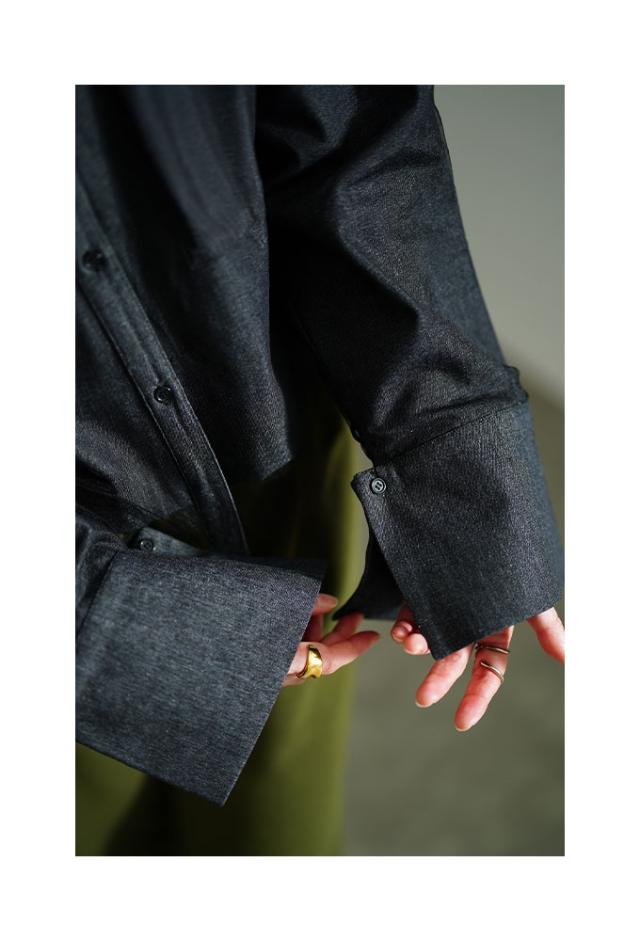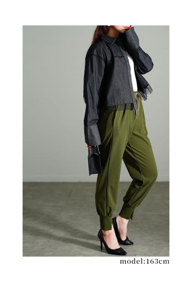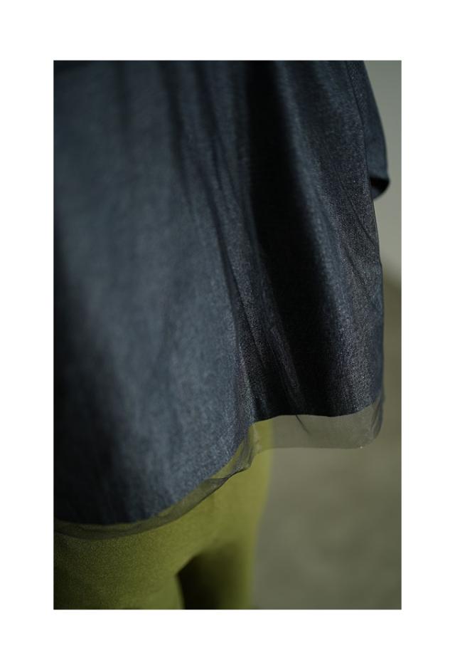 特徴: 異素材 デニム チュール レギュラーカラー ボタン カフス スリット