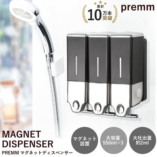 PREMM 公式 マグネット ディスペンサー シャンプーボトル シャンプーディスペンサー 壁掛け式 (大容量 550ml ×3本) 【レビュー投稿で1年保証】【累計10万本突破!】