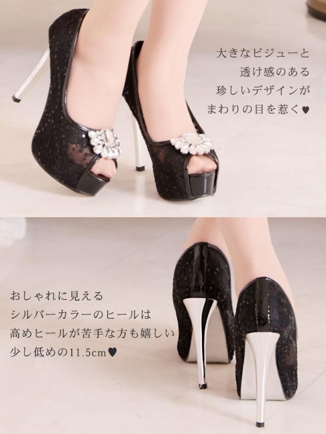 キャバパンプス Ryuyu レース ビッグビジュー シルバーヒール キャバパンプス キャバクラ キャバ パンプス キャバパンプ