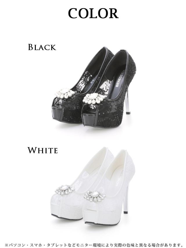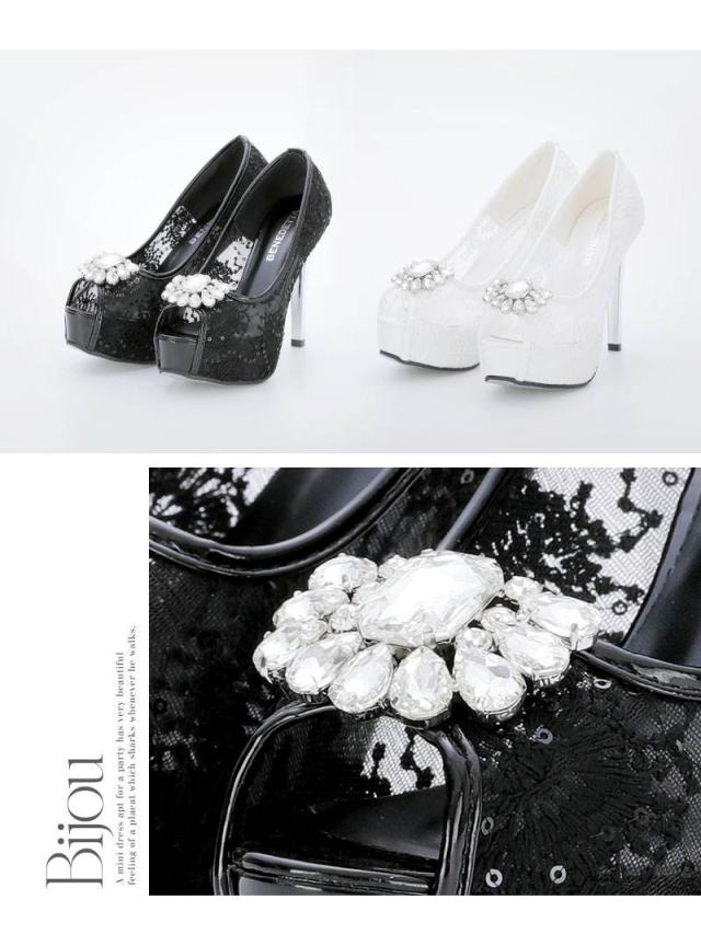 ☆華やかなビッグビジューとレースが魅力のキャバパンプス。