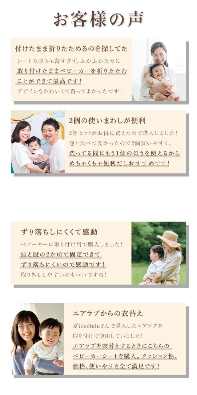 - 3人目が誕生したため、ベビーカー用のクッションを探しており、あらゆるショッピングを見て回りましたが一番ここが安く、良かった。 商品もしっかりしており、今の所問題は無さそうです。