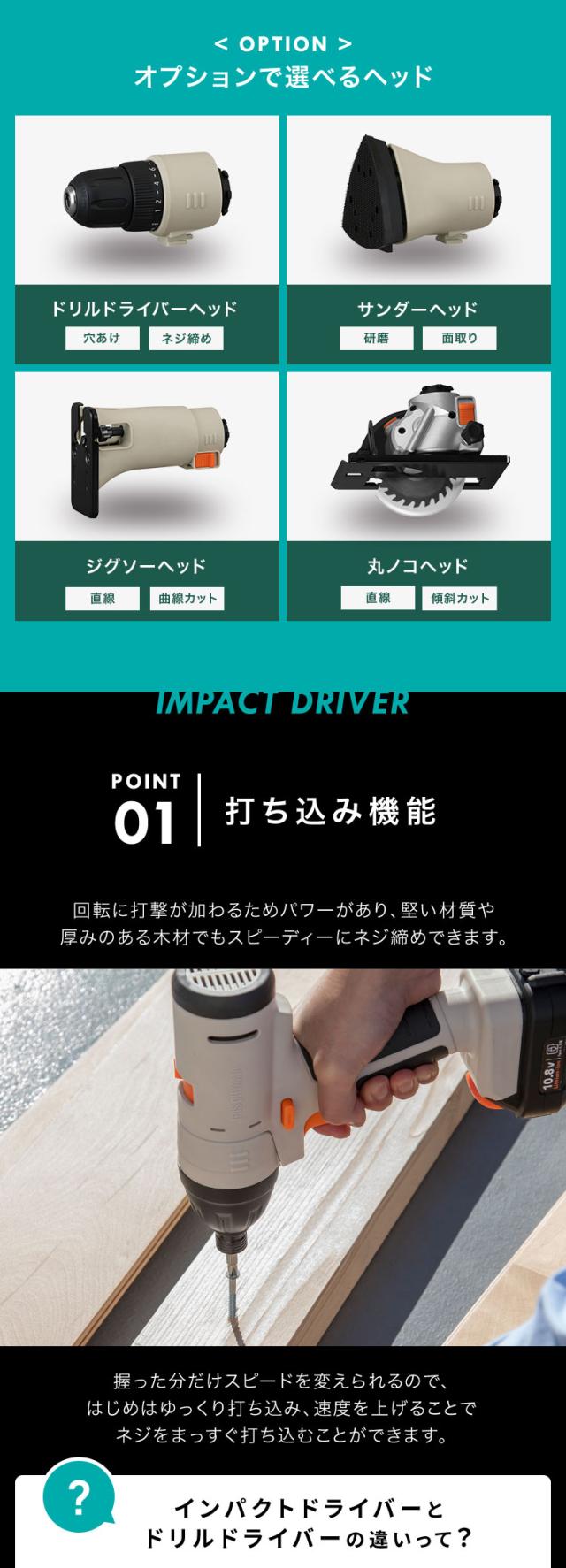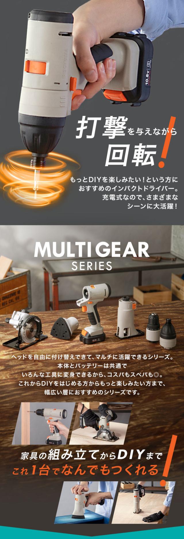[検索用:マルチツールセット 電動工具 充電式 インパクトドライバー 本体 10.8Vマルチギア ドリルドライバー ドリル バッテリー 工具 DIY 初心者 中級者 軽量 4967576735988]