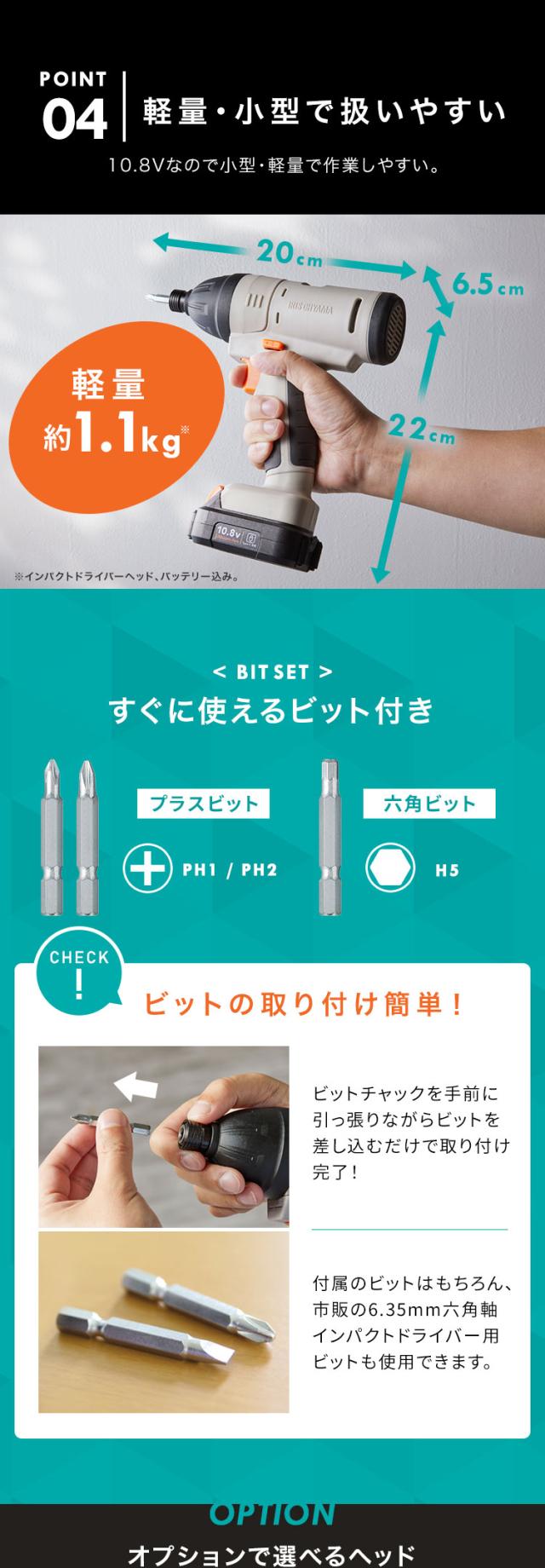 \オプション豊富/ インパクトドライバー マルチツールセット 電動工具 充電式 本体 10.8Vマルチギア バッテリー付き ビット付き PJM10INS アイリスオーヤマ *