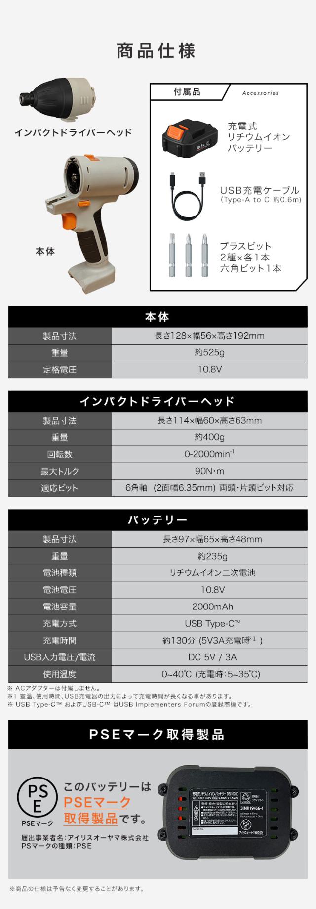 ※こちらは本体・インパクトドライバーヘッド・バッテリーの基本セットです。