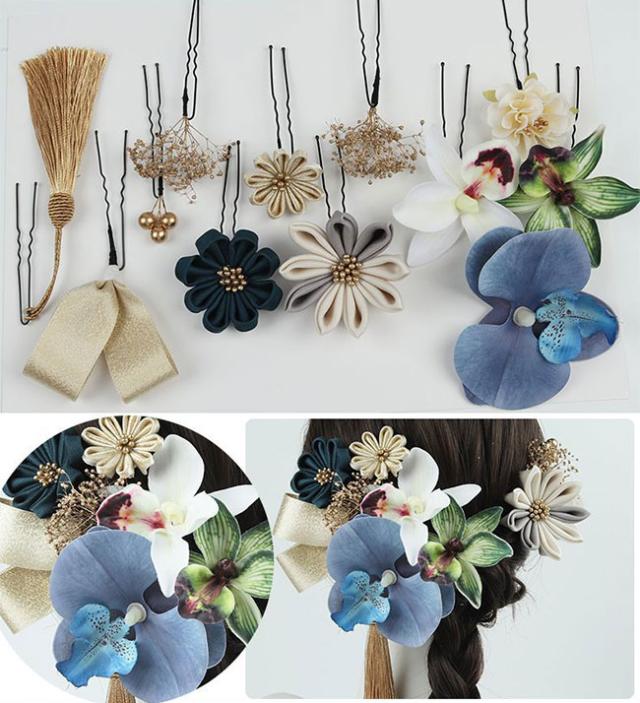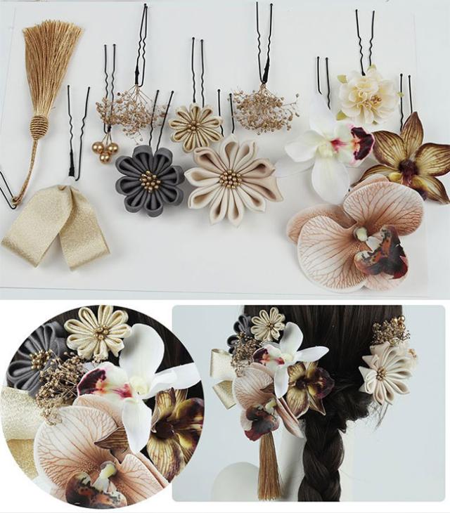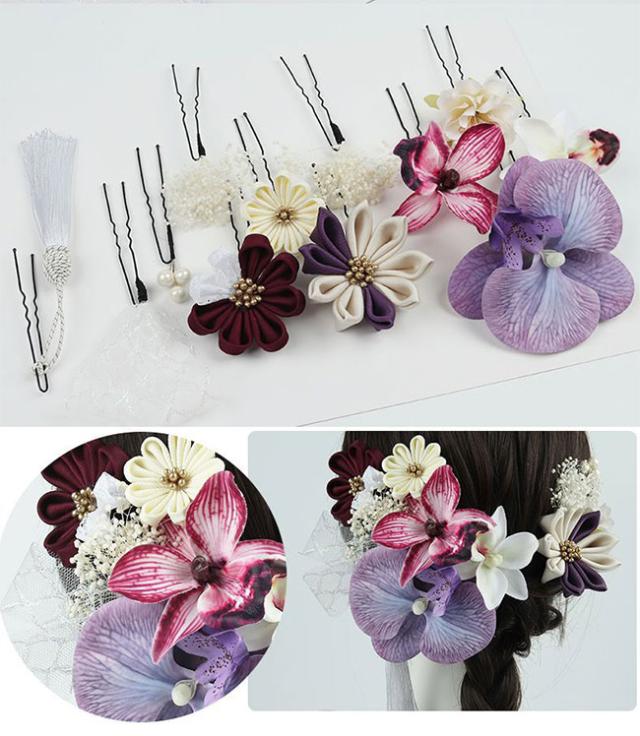 12点セット成人式 髪飾り 卒業式 袴 振袖 ドライフラワー風 造花 フラワー Uピン 浴衣 夏祭り 花火大会 和柄 古典 ヘッドドレス 卒業式 結婚式 和装 着物