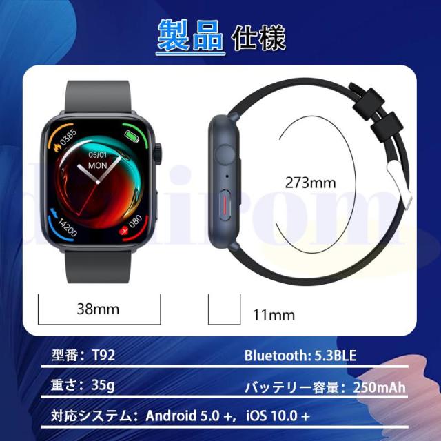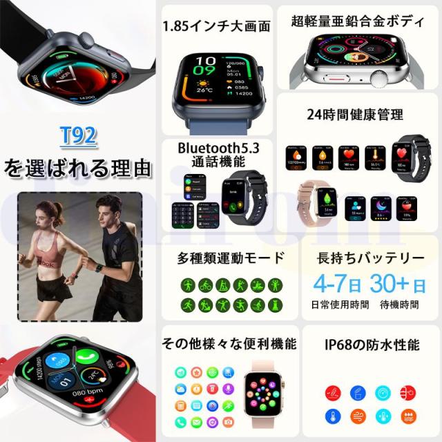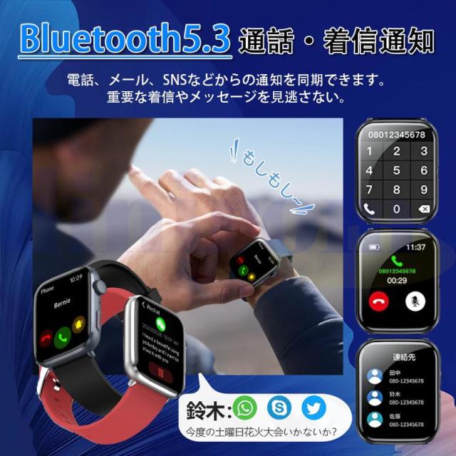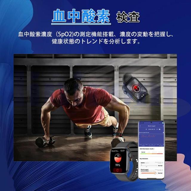スマートウォッチ 血糖 血圧測定 1.85インチ大画面 通話機能付き 血中酸素 心拍数 睡眠管理 運動モード