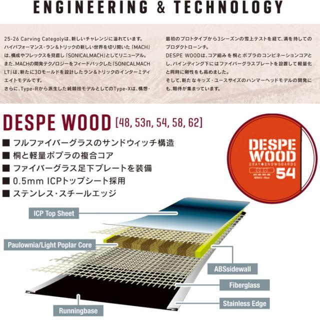 25-26 GRAY DESPERADO WOOD デスペラード ウッド ハンマーヘッド カービング グレイスノーボード 2025 2026 板 日本正規品