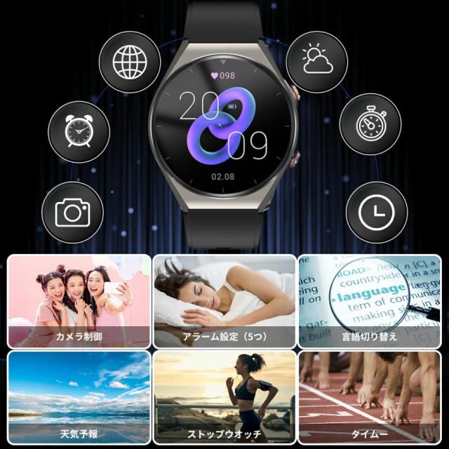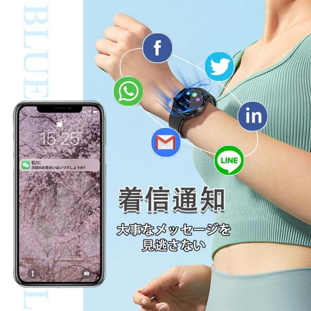 その他の機能:歩数、カロリー、距離、睡眠監視、スポーツ、通話リマインダー、アラームリマインダー、時計から手を上げる、Line、Facebook通知、遠距離でも家族や友人のための機能のリモートケア機能。