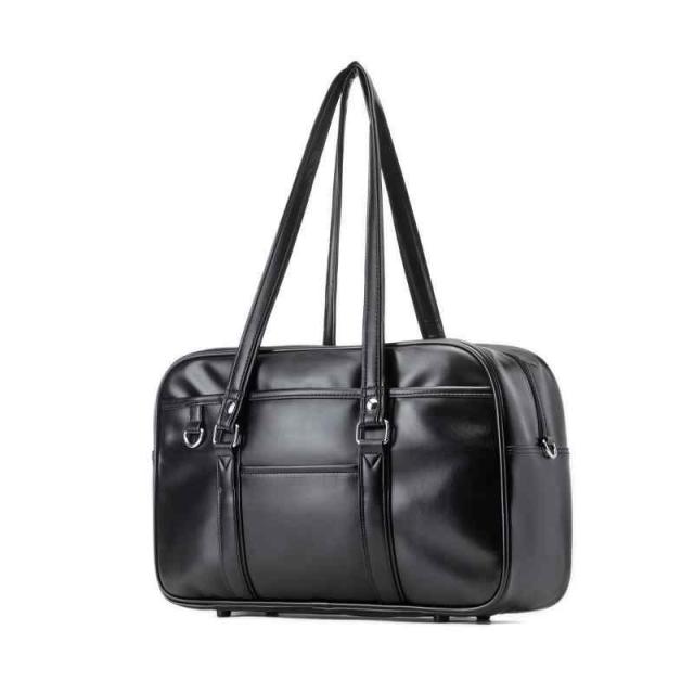 zuevichn スクール 高校生 女子 ボストン 学生 大容量 合皮 男女兼用 (改良ブラック)