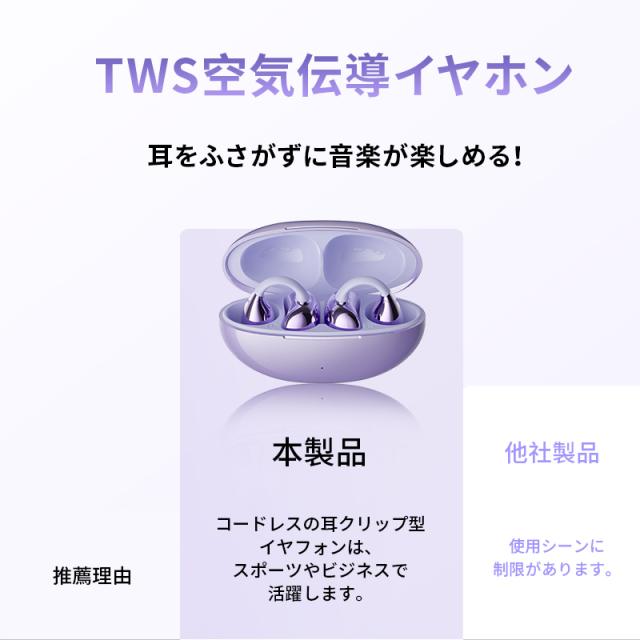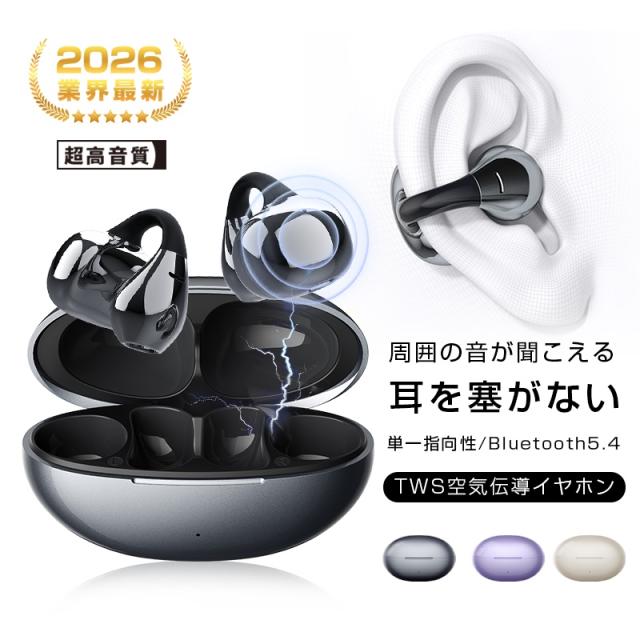 【2026年新モデル】 空気伝導イヤホン Bluetooth5.4 TWS 完全ワイヤレスイヤホン イヤーカフ型 挟み込みタイプ 耳を塞がない ENC ノイズキャンセリング 単一指向性 自動ペアリング HiFi高音質 充電ケース付き 防水防滴 軽量 日本語取扱説明書 【PL保険加入済み製品・安心】