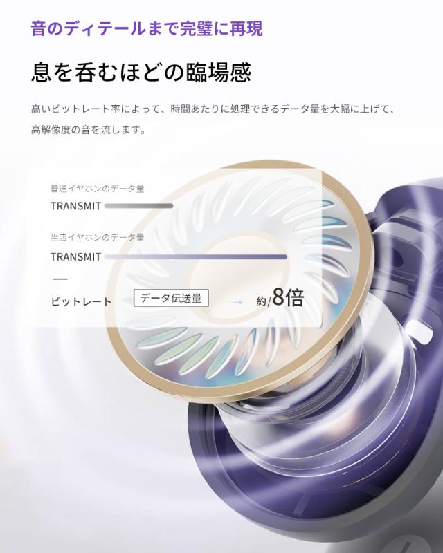 指向性のある空気伝導技術を採用し、従来の骨伝導による振動やかゆみの問題を解決し、独自の技術で骨を通さずに直接耳に音を伝えます。