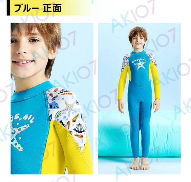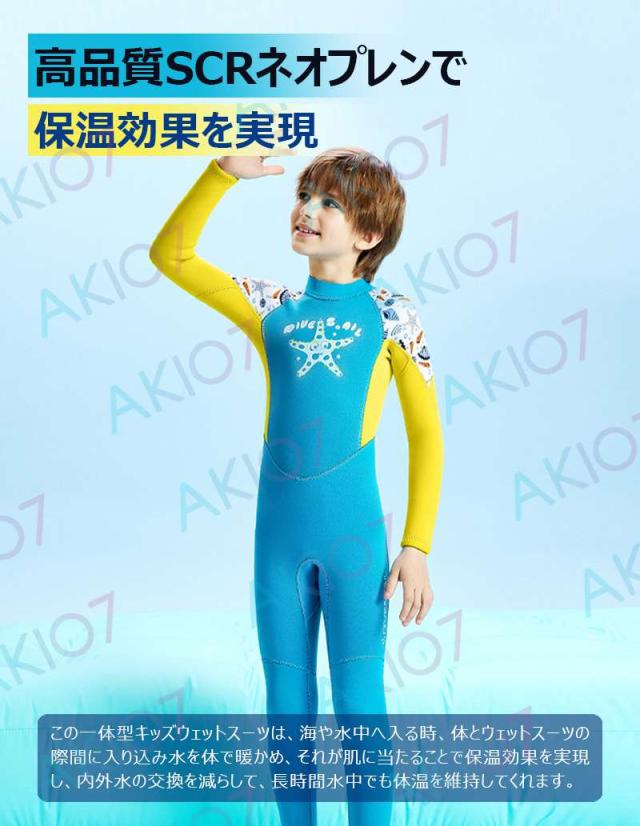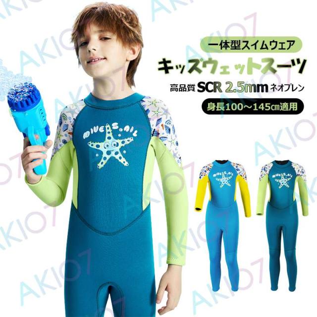 【2.5mmネオプレン&一体型】キッズ ウェットスーツ 長袖 ロングパンツ 子供スイムウェア 水着 防寒保温 ワンピース UVカット 男の子 ケガ防止 マリンスポーツ