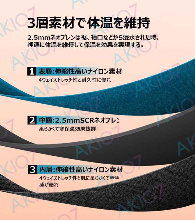 【生地】2.5mmネオプレンを採用しており、保温性、速乾性、耐久性に優れています。